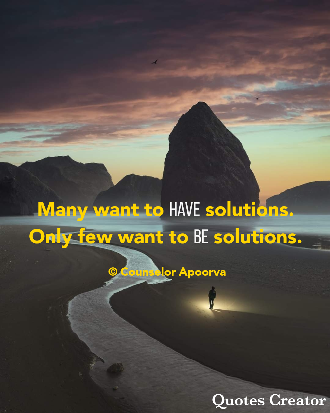 A situation becomes a problem, when a mind perceives it as a problem. The difficulty of the problem doesn’t depend on what it is; it depends on what we make of it. Sometimes, we develop our own perception of what a solution looks like, typically. Unconsciously, it becomes a demand: “It must always look like it.” If we believe all problems are difficult and they need only the smartest solutions, that belief affects our mood, choice, and action. We fail to realize that it’s our choice of response that makes the problem difficult. Some solutions need external additions. Some need simple re-arrangements. Others need replacement of a situation. Whatever it is, it basically needs a change in beliefs. To solve any problem, first check your belief of how the solution MUST be gained. Change it to checking how it CAN be gained.